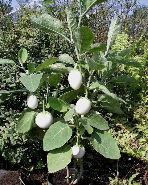 জাতের নাম: Tian Egg White Brinjal (তিয়ানএগ সাদা বেগুন)