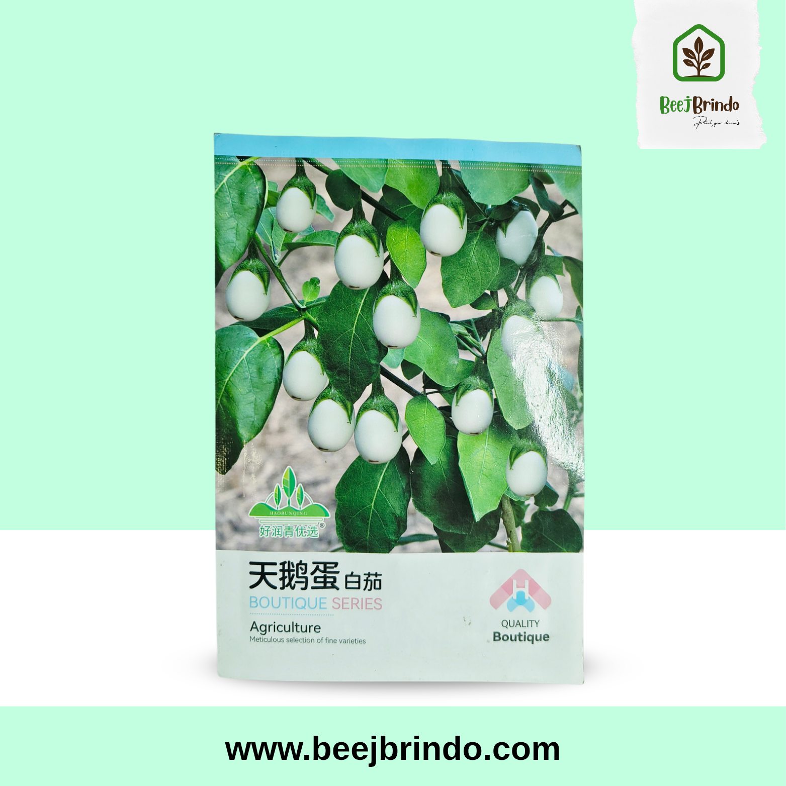 তিয়ানএগ সাদা বেগুন (Tian Egg White Brinjal) – Boutique Series একটি উন্নতমানের, ডিমাকৃতি সাদা বেগুনের জাত। ফল ছোট, গোল-ডিমের মতো এবং উজ্জ্বল দুধ-সাদা রঙের, যা গাছ ভরা অবস্থায় অত্যন্ত আকর্ষণীয় দেখায়। স্বাদে মৃদু, কম তিক্ত এবং নরম টেক্সচারের হওয়ায় বিভিন্ন ধরনের রান্নায় উপযোগী। ছাদ বাগান, হোম গার্ডেন ও বাণিজ্যিক চাষ—সবক্ষেত্রেই এটি একটি জনপ্রিয় ও নির্ভরযোগ্য জাত।
